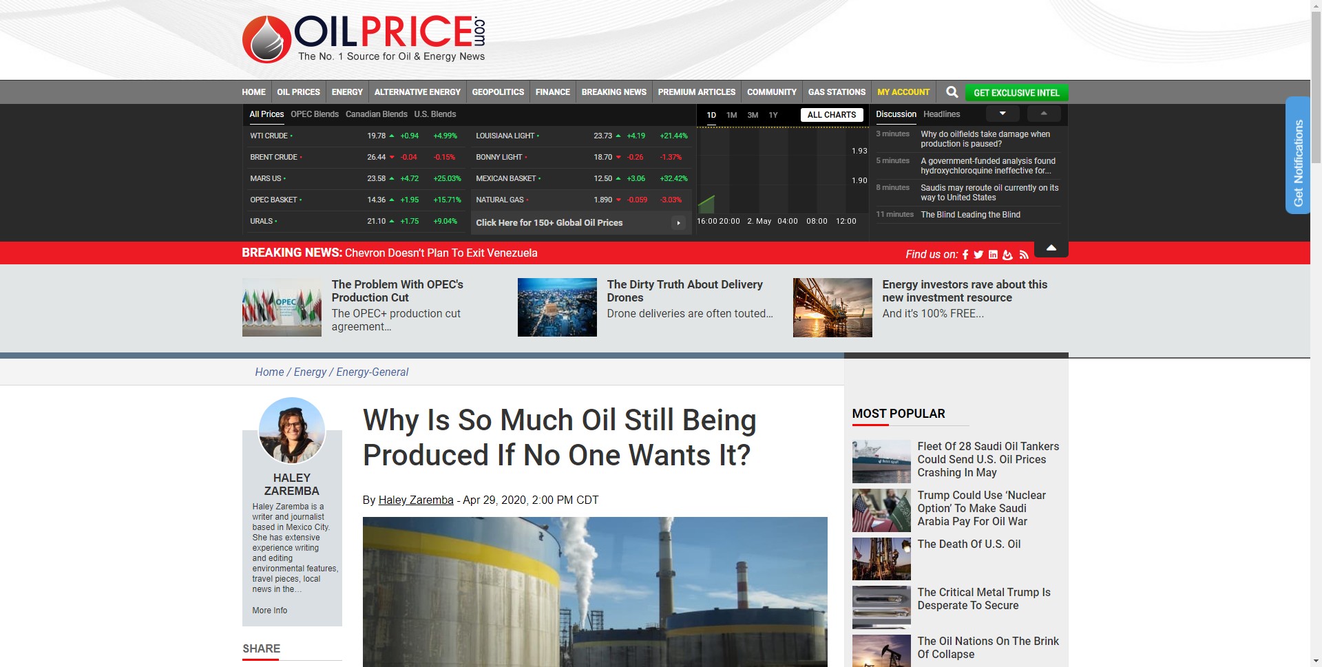 On April 28, American oil producers began sending oil to the Strategic Petroleum Reserves for storage. Nine companies will lease space for 1.1 million barrels of crude, less than 5% of the average amount of oil consumed per day in the nation. [18]