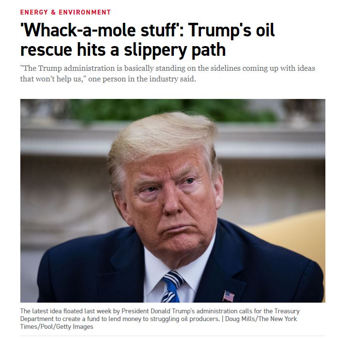 On March 19, President Trump directed the Department of Energy to fill the Strategic Petroleum Reserve to maximum capacity. Congress did not approve funds for the purchase of the oil necessary to fill the tanks. Depressed demand and a flooded market shocked the American oil producers, who were faced with extreme excesses of oil.